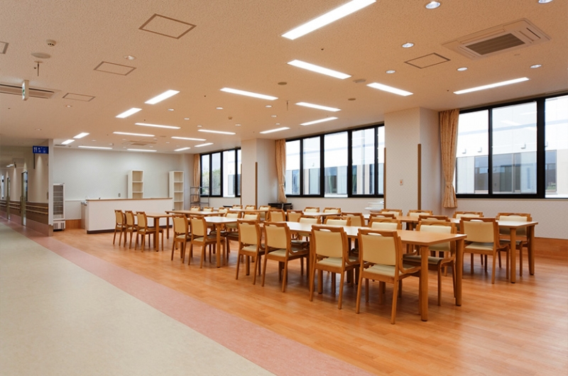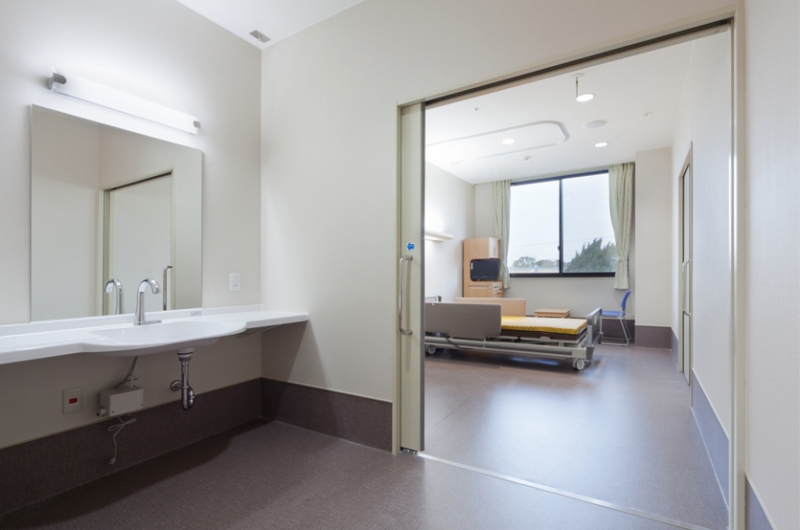 既設重心病棟の改修では病床の内装改修を行い42ベットを50ベットに増床、また既設7病棟に接続した形態で、約300㎡のB型通園療育棟の建設は、療育室の日当たりを考慮し南にある園庭にも直接アクセスしやすい計画としました。