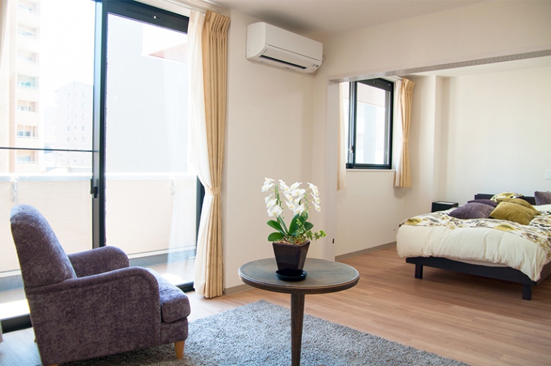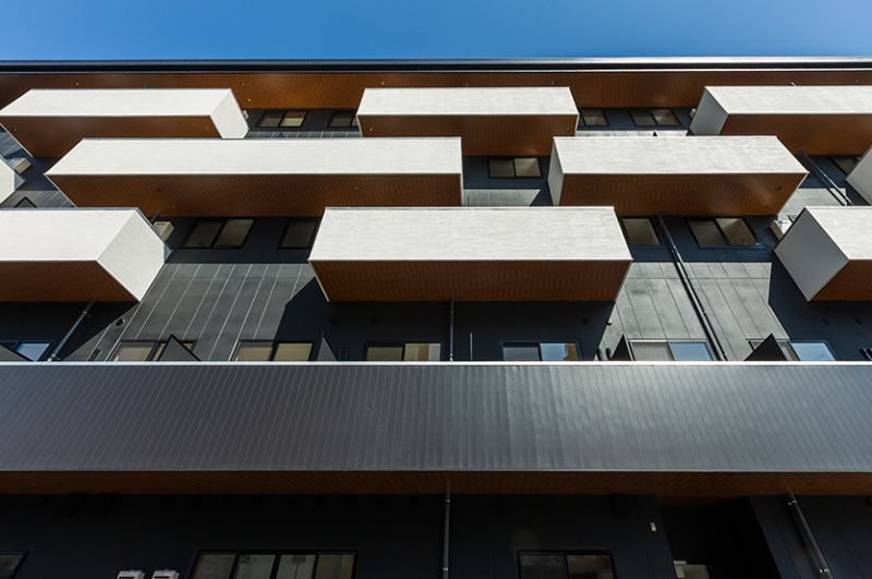 入居者同士の顔見知りを作るきっかけに、1階エントランスにはコミュニティスペース・共同浴場前にはラウンジを設けました。3階の利用者用屋上農園からは老松公園の木々が眺められます。お花見や紅葉鑑賞など、入居する皆さんに親しく賑やかに生活を楽しんでいただける様プランを考慮しました。