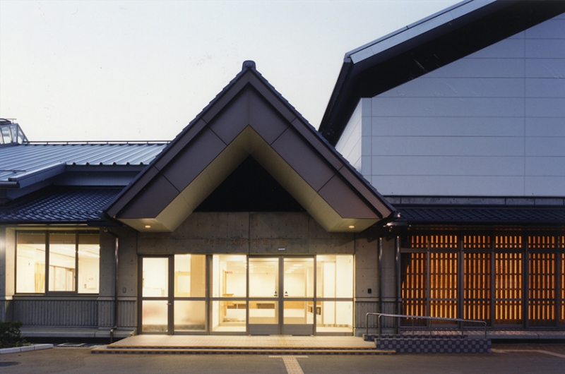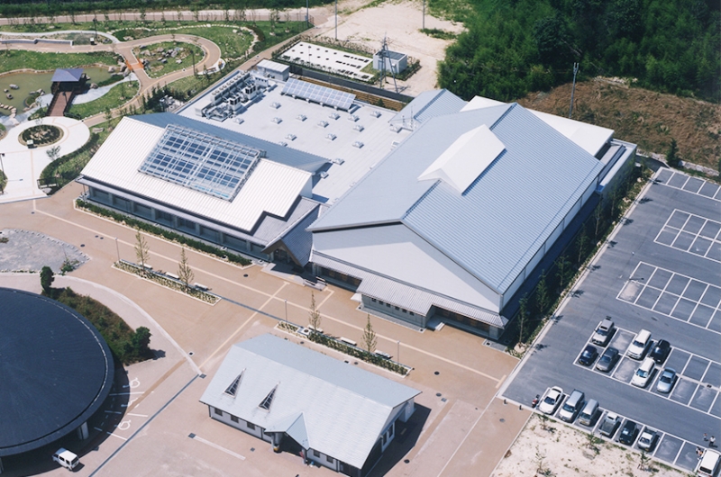 「体育館、温水プール、弓道場の施設を一体平屋建て。構造はシンプルに省エネ対策の配慮。」を条件とし、宣伝効果のある太陽光発電、熱源は深夜電力を使った業務用築熱方式、採光システムソーラーを採用しました。