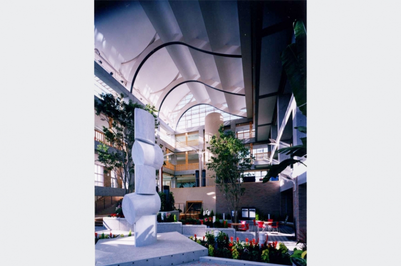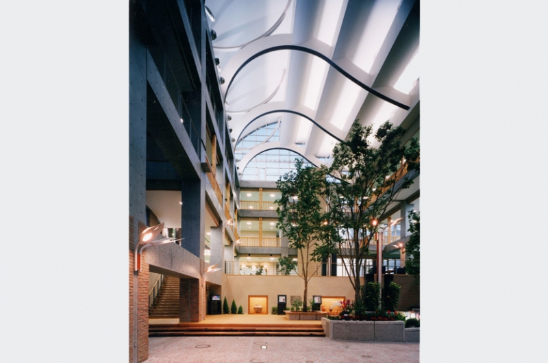 極軟鋼ブレースとCFTによる制震構造、太陽光発電、風力発電、雨水利用、地中熱利用(クール・ヒートチューブ)ダブルスキン、屋上緑化、ビオトープ、リサイクル陶片による地下式調整池など当時、最先端の環境技術、建設技術を採用するとともに、建設プロセスにおいても、地域の環境・景観に配慮しました。