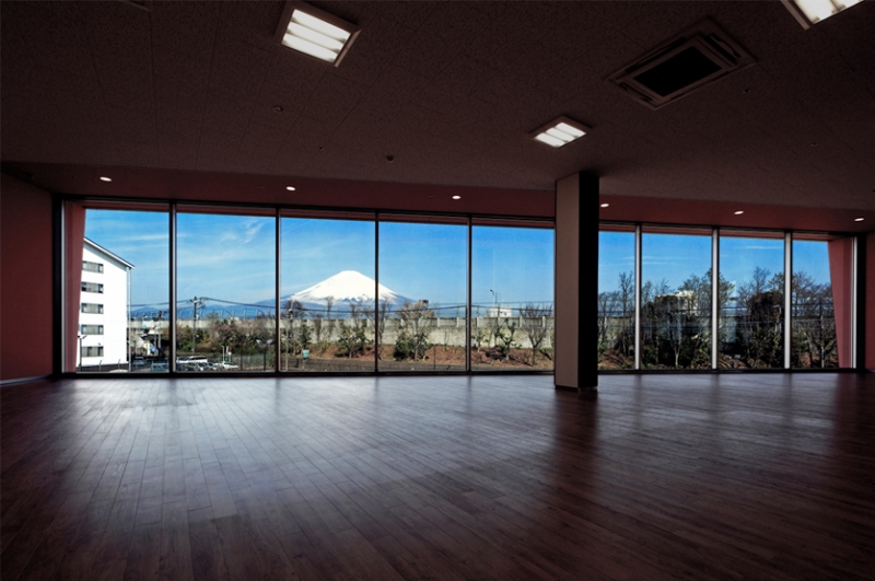 2階の展望休憩室では富士山を眺められるように大開口を設けてあり、外壁から突き出た展望部分は外観を特徴付けています。