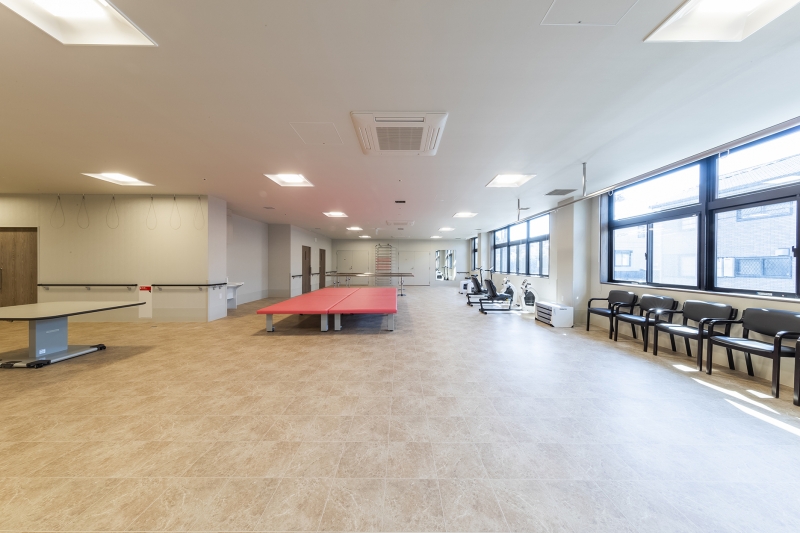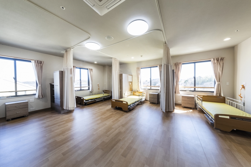事業内容は入所療養施設と通所リハビリテーションを主軸としており、入所療養施設は従来型で2階60人、3階(認知症)40人の計100人定員で4人室、個室の療養室を設けています。