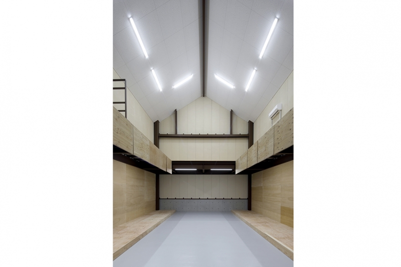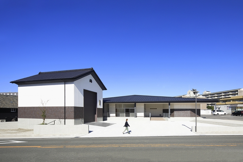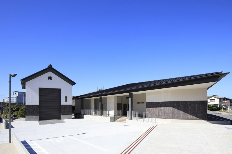 外観は常滑のまちなみを作っている「屋根」に着目し、軒先に変化を持たせることで新しいまちなみを形成するデザインとしました。本館、山車庫ともに外壁には地元の由松製陶所のタイルを使用して風景に調和し地域住民から永く親しまれ、利用される施設を目指しました。
