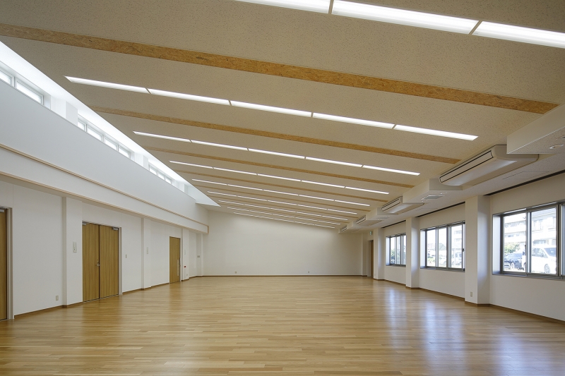 大ホールでは祭礼の練習をすることから、太鼓や笛などの音が騒音とならないよう遮音性の高いガラスを使用するなど防音に配慮して設計監理を行いました。