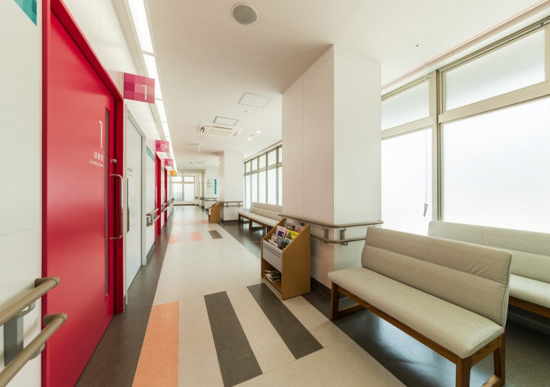1階外来は、中央に病院機能をまとめ、患者動線を回廊状の外部に面した単純な動線とし、待合時に閉塞感のない計画としました。