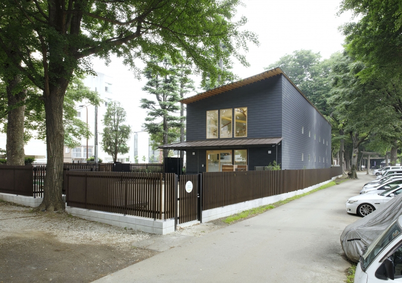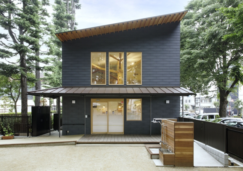 玄関には園児たちを優しく迎え入れる庇を設置し、軒裏は垂木と野地板を現し、力強い自然に負けない凛とした表情の建物を目指しました。