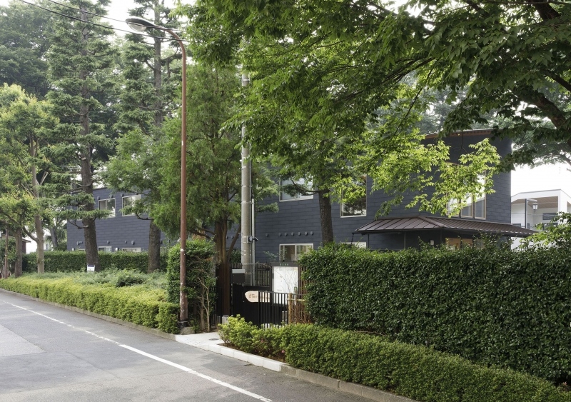 敷地は北区の保存樹林にも指定される境内の一角にあり、周辺は住居、製紙工場、公民館などが混在しています。