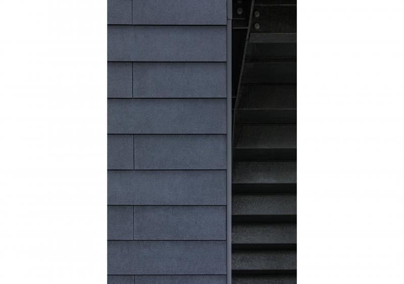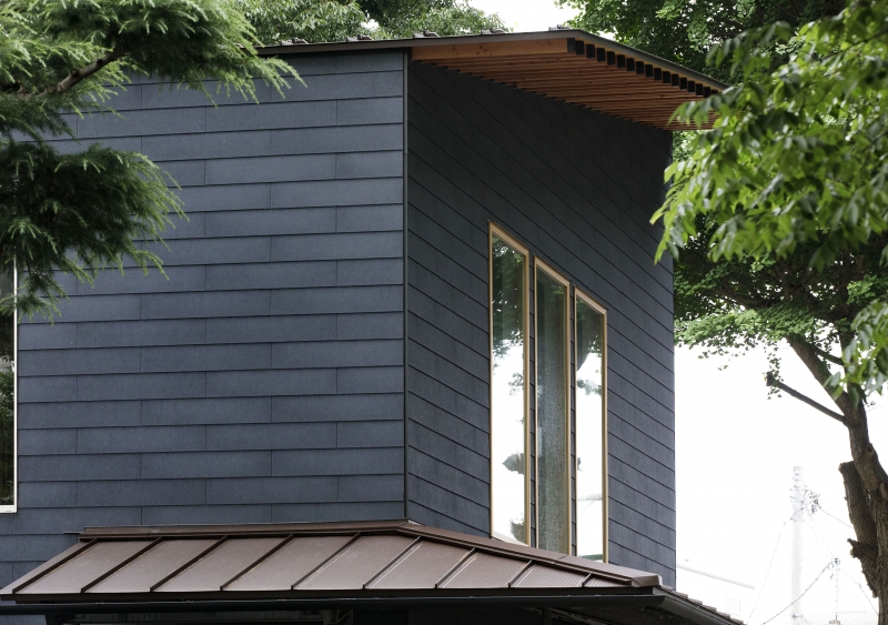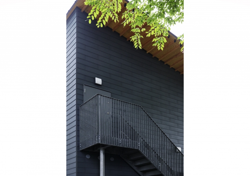 外壁は歴史ある社殿や、うっそうと茂る樹林との関係を考慮し、シンプルかつ存在感のある外壁を実現できるシーリングレス工法による平形壁用スレートを採用しました。