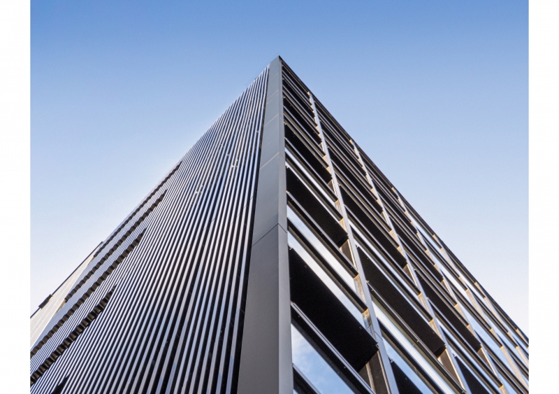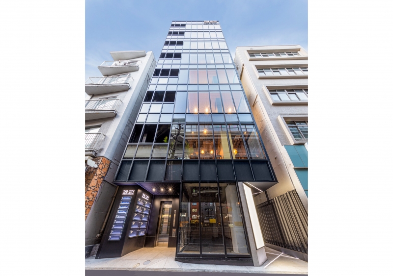 建物一面ガラスカーテンウォールで構成することで、異なる用途が入るビルに統一感をもたらします。