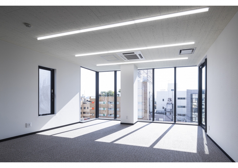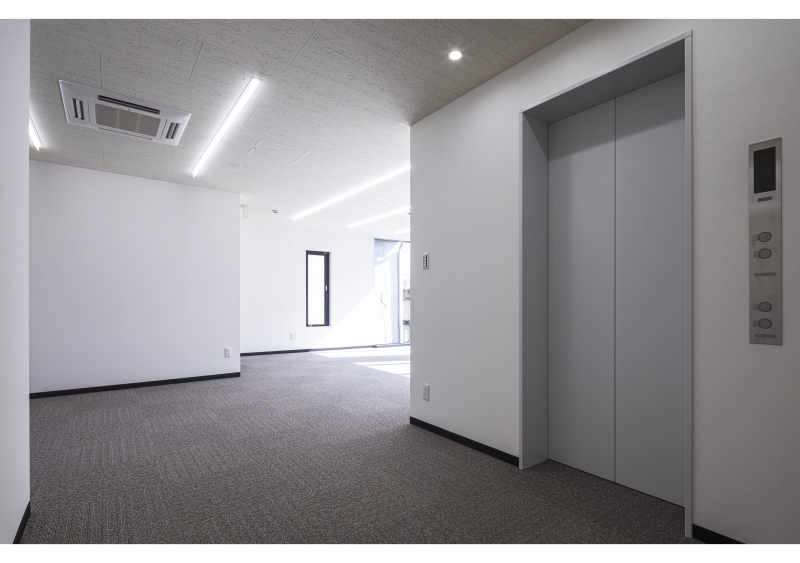 サービス店舗・事務所階はライン照明を基調としたシンプルな内装としました。