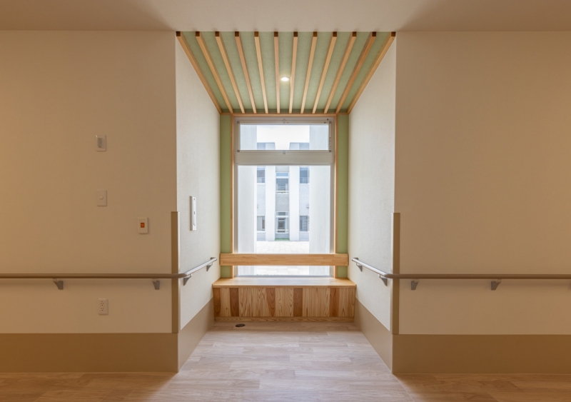内部は明るい木目とユニットカラーをベースに、住宅に近い安心感のある内装を心がけました。