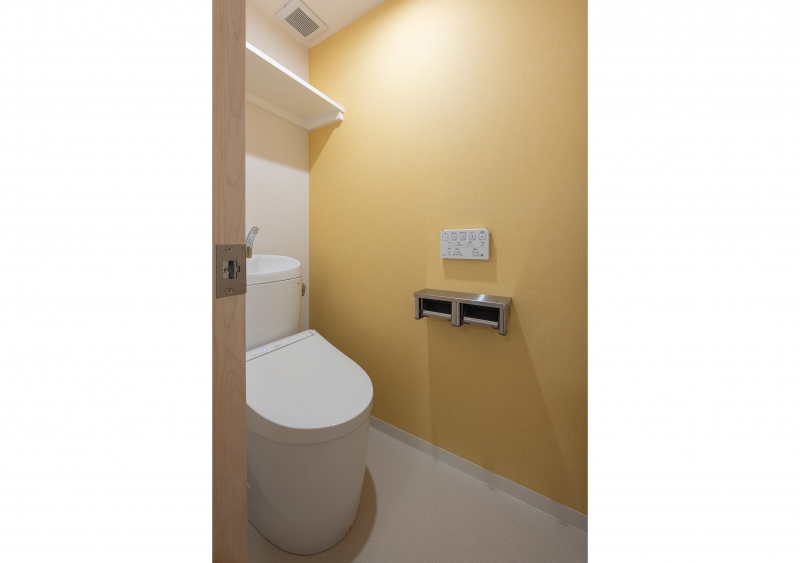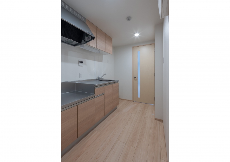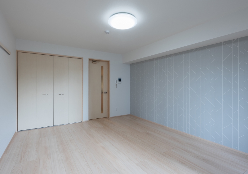 内部では明るい木目をベースにアクセントクロスを採用し、異動の多い居住者に少しの間でも愛着を持ってもらえるようなインテリアを目指しました。